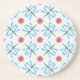 Un beau Dessous de verre rond de grès, avec un motif de nénuphars roses et de libellules bleues, d'un collage de papier peint à la main par Judy Adamson. Excellent cadeau pour quelqu'un ayant un anniversaire de juillet; une partie de la collection Posh & Painterly 'Lily Pond'.