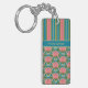 Un Porte - clé acrylique oblong chic à personnaliser, avec un motif de Nénuphars roses et de libellules bleues, en équipe avec un motif rayé assorti; de la collection Posh & Painterly "Lily Pond".