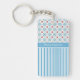Un Porte - clé acrylique oblong chic à personnaliser, avec un motif de Nénuphars roses et de libellules bleues, en équipe avec un motif rayé assorti; de la collection Posh & Painterly "Lily Pond".