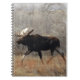 Bull Moose Notebook. A big bull moose lumbers through the scrub brush in a sand hills area of south eastern Alberta, Canada. Moose seem out of place in this dry, sandy terrain that has very little water to support the aquatic vegatation moose usually feed on.