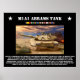 The M1AI Abrams is the United States third-generation main battle tank. In service since 1980. It is named after General Creighton Abrams, former Army Chief of Staff and Commander of U.S. military forces in the Vietnam War. Its Main armament is a 120 mm Smoothbore cannon with 42 rounds. Secondary armament one .50-calibre M2HB heavy machine gun with 900 rounds. Manned by a crew of 4. The Abrams has seen action in the Persian Gulf War & the War in Afghanistan. Over 9,000 have been built.
