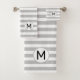 M letter on Silver Grey & White Striped Bath Towel Set