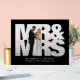 Panneau en acrylique noir chic pour commémorer votre mariage ou anniversaire avec votre photo dans un cadre découpé "Mr & Mrs" et vos prénoms, date mariage et emplacement dans une simple typographie blanche moderne.
