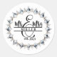 Cet autocollant rond est montré avec un nom personnalisé M & Mme imprimer, personnaliser et changer le nom et l'année à votre avec ce modèle.