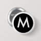 A badge-style button with a monogram. The white disc is the design element and the black text and background can be changed if you "Customize it!" with the system.