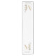 Letter M monogram floral. Letter M in golden brown texture accented with green watercolor compound leaves, flower blossoms and gold dust. Personalize with name in matching font.