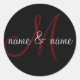 black, silver and red "M" monogram label, personalize first names perfect for newlyweds!