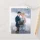 Un design photo tendance avec un script de pinceau de typographie blanche et une belle photo mariage. Le texte à l'avant et le message à l'arrière peuvent être personnalisés.