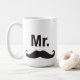 Conception à la mode et attirante comportant une moustache et le titre "M.". Cette tasse d'amusement fait un cadeau parfait pour un marié, le papa, le diplômé, le mari, l'ami ou n'importe quel type. Appareillez-la avec les lèvres attaquent pour un couple.