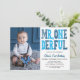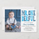 Invitation votre famille et vos amis pour célébrer le premier anniversaire de votre fils avec ces mignonnes Invitations photo M. Onederful. Cette conception comprend une photo unique du garçon d'anniversaire, script de typographie MR.ONEDERFUL en lettres bleues/navy et détails de la fête.
