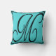 M PILLOW- The Letter M on Aqua Background Throw Pillow