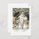 Cette magnifique carte postale allemande illustre un corbeau qui visite un bonhomme de neige entouré de paysages hivernaux. La simplicité et les couleurs donnent une belle image accrocheuse. Il est parfait pour tous vos besoins de Noël et de vacances.