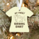 Ce joli dessin original comprend un dessin d'un enfant qui regarde un troupeau d'oiseaux à travers des jumelles. Texte en police de caractères adaptée aux enfants : "Ma première chemise d'oiseau." C'est un grand cadeau pour les oiseaux en herbe et les parents d'enfants qui veulent orienter leur progéniture dans le style de vie de l'ornithologue. Vous pouvez customiser ce cadeau ! Ajoutez le nom de votre enfant ou tout autre texte personnalisé à l'arrière de la chemise ou à côté du dessin. Personnalisez-le à votre gout !