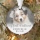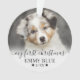 Ornement personnalisé de chien pour photo de compagnie pour mon premier Noël. Célébrez le premier Noël de votre chiot ou animal de compagnie avec cet ornement charmant et personnalisé, conçu pour capturer la joie de leur toute première saison des fêtes. Le devant comporte un espace pour une photo de votre animal avec la phrase "Mon premier Noël" en calligraphie élégante, ainsi que le nom de votre animal et l'année de naissance pour un effet personnalisé spécial. Au dos, un deuxième espace photo est associé à "Joyeux Noël" dans la même écriture délicate, avec le nom et l'année de votre animal affichés en plus petit en bas. Des accents d'empreintes de patte ajoutent une touche adorable, tandis qu'un effet ombré blanc doux orne le bas de chaque photo, créant une transition lisse et raffinée. Les couleurs de la police et des empreintes de patte peuvent être personnalisées pour s'adapter à votre style. Cet ornement souvenir est parfait pour célébrer la première fête de votre ami à quatre pattes, ajoutant