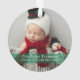 Ce simple et élégant ornement à deux côtés de gardien de vacances comprend une photo préférée de votre photo de nouveau-né avec une simple rayure verte translucide recouverte d'un texte moderne "Mon 1er Noël" qui peut être personnalisé avec le nom du bébé et son année de naissance. La couleur verte neutre est un travail pour un bébé garçon ou une petite fille.
