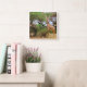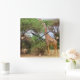 10.75” x 10.75” acrylic wall clock with an image of a Maasai giraffe feeding on a tree. Gold orbs mark the 12, 3, 6, and 9 positions.