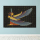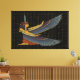 A Canvas print featuring Ma'at sitting with spread wings. This Maat design is with the ostrich feather that represents truth on her head. The golden Egyptian hieroglyph background also highlights the Goddess of truth, justice, balance and order.