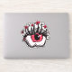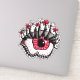 Trippy eye sticker with a digital illustration depicting a creepy red eye with eyelashes which have their own eyelashes and are ending in flowers red and grey flowers over cheerful blue background. When sometimes your eyes are so strained that you are sure they will melt in the next three seconds. This psychedelic design is just for you if you like bright colours and weird art.