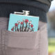 Weird eye flask with a digital illustration depicting a creepy red eye with eyelashes which have their own eyelashes and are ending in flowers red and grey flowers over cheerful blue background. When sometimes your eyes are so strained that you are sure they will melt in the next three seconds. This psychedelic design is just for you if you like bright colours and weird art.