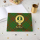 Clan MacAlister of Glenbarr crest badge surrounded by a strap and buckle over hunting tartan background. Custom front, back and spine text.