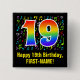 Ce bouton amusant, coloré et dynamique sur le thème de l'anniversaire comprend un grand nombre de "19" avec un motif inspiré par un gradient de spectre arc-en-ciel, ainsi que le message "Joyeux 19e anniversaire", et un nom personnalisé. Une partie de l'arrière - plan dispose d'un motif de divers notes de musique et symboles ayant une variété de couleurs et de tailles. Des boutons d’anniversaire amusants et personnalisables comme celui-ci peuvent être portés par les participants à une fête d’anniversaire pour honorer le dix-neuvième anniversaire d’un compositeur, d’un chanteur, d’un musicien ou d’une autre personne. [~Z0000424]