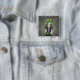 Ce bouton carré broche arrière a une jeune fille Goth spook avec cheveux verts et noirs dans un casquette vert néon avec tatouage spiderweb sur son visage contre un gris foncé avec arrière - plan vert brillant. Customisez votre texte avec le modèle.
