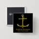 Macaron Carré 5 Cm Ancre classique en or nautique sur noir