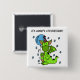 Un dragon vert avec un ballon d'anniversaire bleu et un casquette de fête sur un bouton d'anniversaire qui est facile à customiser avec votre propre texte.