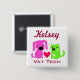 Bouton mignon pour les techniciens de vétérinaire. Chien rose et chat vert avec coeur rouge au milieu. Personnalisez avec votre nom. Peut être utilisé pour n'importe quelle profession de soins des animaux de compagnie qui s'occupe des chats et des chiens.