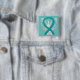 Macaron Carré 5 Cm Cancer de l'ovaire Sensibilisation Turquoise Ruban