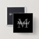Monogramme initial personnalisé Nom du script Modèle noir personnalisé Élégant bouton Carré tendance.