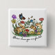 Macaron Carré 5 Cm Chatte de chat jouant jardin fleurs papillon fleur