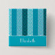 Macaron Carré 5 Cm Chevron Turquoise Moderne Grilles Avec Nom