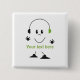 Modèle de boutons. Petite créature mignonne écoutant de la musique. Ajoutez votre propre texte en utilisant ce modèle et en remplaçant les mots "Votre texte ici", supprimez sans texte ou cliquez sur "Personnaliser" pour modifier la taille, le style et la couleur de la police.