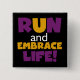 Si vous aimez courir, courir 5Ks, 10Ks, demi-marathons ou marathons, vous adorerez ce texte coloré en violet et jaune qui lit Run and Embrace Life! Courez et Embrace Vie T-shirts, sweat - shirts à capuche, magnets, boutons, cartes, autocollants, porte - clés, et beaucoup d'autres articles pour les coureurs qui aiment un design de course brillant et coloré!