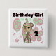 Un singe-fille entouré de ballons roses et de fleurs est assis sur des cadeaux d'anniversaire et le texte dit "Fille d'anniversaire 2" sur les t-shirts, costumes, cartes, sacs fourre-tout, magnets, et plus encore.