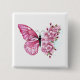 Flower arrangement of pink butterfly with rose Japanese cherry blossoms on white background.