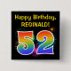 Ce design amusant et dynamique de boutons présente un motif coloré inspiré par des feux d'artifice festifs éclatants, ainsi que le numéro "52" avec un spectre multicolore d'inspiration arc-en-ciel ou motif dégradé. Il comporte également un nom et un message d'événement personnalisés, comme un message d'anniversaire "Joyeux anniversaire". Un bouton comme celui-ci peut être porté par les invités à une fête d’anniversaire qui se tient pour célébrer le cinquante-deuxième anniversaire de quelqu’un. [~Z0000334]