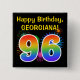 Ce design amusant et dynamique de boutons présente un motif coloré inspiré par des feux d'artifice festifs éclatants, ainsi que le numéro "96" avec un arc-en-ciel multicolore comme spectre ou motif dégradé. Il comporte également un nom et un message d'événement personnalisés, comme un message d'anniversaire "Joyeux anniversaire". Un bouton comme celui-ci pourrait être porté par les participants à une fête d’anniversaire qui se tient pour célébrer le quatre-vingt-seize anniversaire de quelqu’un. [~Z0000334]