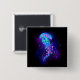 Grande méduse bleue, artistiquement dessinée, brillante, brillante, avec de longues tentacules sur arrière - plan noir avec bioluminescence violette. Méduse brillante.