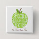 Un bouton pour les professeurs spéciaux d'ed comportant une illustration d'une pomme verte de tige brune et de deux feuilles verts sur le dessus. Le texte blanc sur la pomme lit "le PROFESSEUR d'ÉDUCATION SPÉCIALE." Personnalisez avec votre nom dessous dans le brun.
