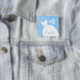 Joli badge à thème de mariée avec une robe mariage stylisée et des fleurs dans les tons bleu et blanc. Un design personnalisable pour personnaliser avec votre propre texte, photos et idées.
