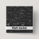 Bouton noir avec équations mathématiques en blanc pour les amateurs de maths. Le texte dit "professeur de mathématiques" mais il peut être personnalisé. Conçu par Patricia Alvarez.