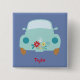 Bouton d'inspiration hippie, ce design présente une voiture hippie bleue aux motifs floraux. Un panneau de paix blanc est présent sur le véhicule. Customisez avec votre nom aujourd'hui ! OEuvre d'art automobile créée par : Conception de Prettygrafik (https://www.etsy.com/shop/Prettygrafikdesign)