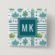 Macaron Carré 5 Cm Motif succulent d'aquarelle verte et bleue