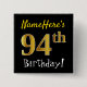 Macaron Carré 5 Cm Noir, Faux Gold 94ème Anniversaire, Avec Nom Perso