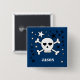 Un bouton amusant avec un crâne bleu mignon et un design d'os croisé entouré d'étoiles. L'impression de nom sous la conception et la couleur de fond sont entièrement personnalisables.