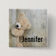 Bouton personnalisé avec une photo de chéri d'un mignon ours en peluche, debout près d'un mur en bois rustique / fond.