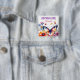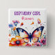 Un joli papillon entouré de fleurs roses et violettes aquarelle illustration fête d'anniversaire de fille bouton personnalisé fille d'anniversaire.