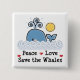 Macaron Carré 5 Cm Peace Love Save The Whales Button